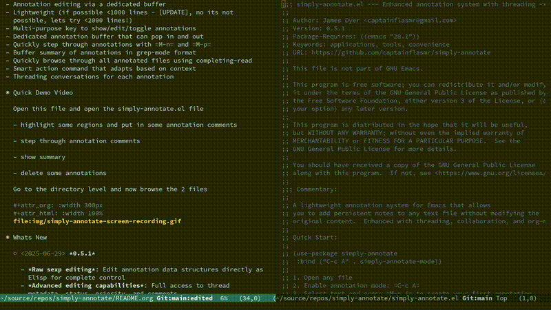 I developed this package to fill my own perceived gap in the existing Emacs note-taking ecosystem. Although annotate.el comes close to what I needed, I wanted a simplified version and something with a few workflow adjustments that better suit my note taking preferences. The result is a lightweight alternative that handles annotations the way I have always wanted them to work.